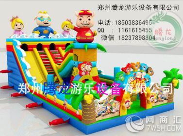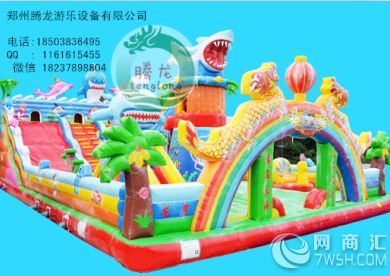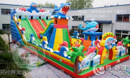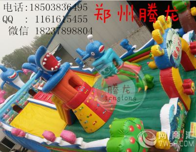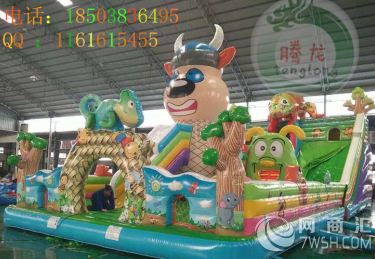 充气城堡采用专业的原材料供应商,0.45mm一等加厚,环保型PVC材料。专业的设计人员生产工艺:下料,缝纫(热合),粘整(美化),成品。尽可能多的使用双明线缝制,线迹均匀,针距控制在4.2到4.5mm之间。(能够大限度的减少漏气和增加缝纫部位的垃圾强度。)粘整刷胶宽度与粘条的宽度误差不超过正负12.5px。造型与大面连接处大限度地采用弧线结构。目的是使产品的受力均匀,增加产品的使用寿命。每两个造型之间和造型与护栏之间都有一定的安全距离。(1米)产品造型逼真,颜色搭配美观。而且能够充分保证游玩者的安全。 售后服务:终身提供维修用的胶水和角料,我公司售后服务人员将及时为您解决疑难问题,收到客户信息后,即时给予客户一个处理意见或技术指导不能即时处理的,将在24小时内与客户联系并根据实际情况提出处理意见。可使用八至十万人次左右。配送相应风机,胶水和修补材料。良好的品质,优质的服务,专业的技术,是我厂给每一位客户的郑重承诺。让您投资零风险!