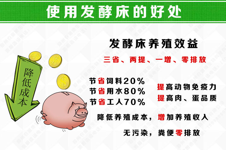 养殖过程无污染、零排放;发酵床养猪可以将猪的粪尿全部降解,达到零排放消除养猪场臭味。