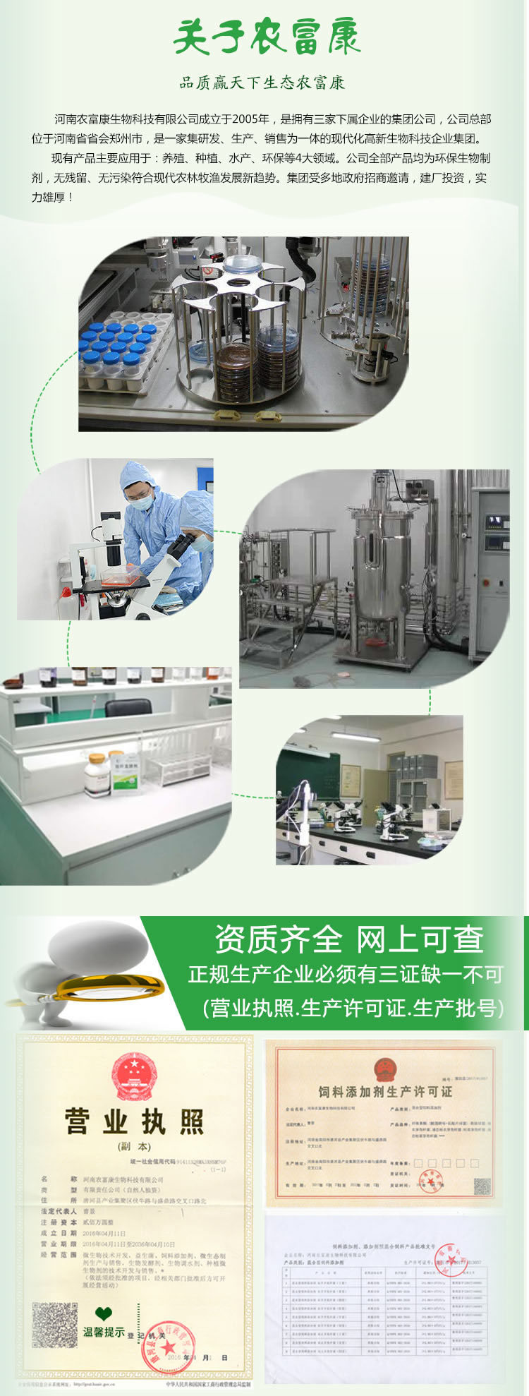 4.发酵好之后的垫料往圈舍内平铺,夏天铺60公分左右,冬天铺80公分,铺好后把准备好的土在其发酵床表面薄薄的撒上一层,就可以使用了(不撒土也可以)。 发酵床维护的主要目的:一方面是保持发酵床正常微生态平衡,使有益微生物菌群始终处于优势,抑制病原微生物的繁殖和病害的发生,为养殖动物提供健康的生态环境。 另一方面是确保发酵床对动物粪尿的消化分解能力始终保持在较高的水平上,同时为养殖动物的生长提供一个舒适的环境。 农富康咨询订货电话:15039067649李经理 文章编码:20652099988农富康发酵床菌液养猪降低养猪成本