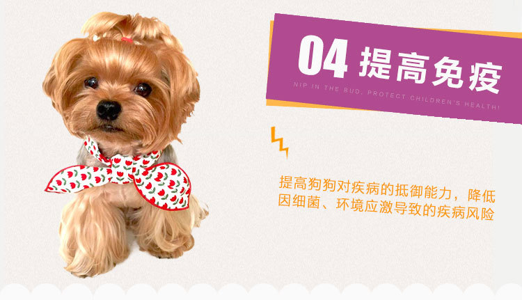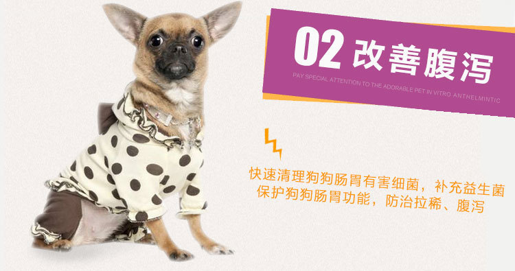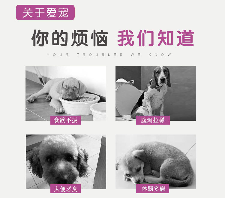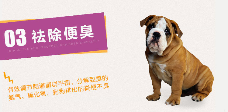 当狗狗出现食欲不振、腹泻拉稀、大便恶臭、体弱多病等让主人很焦虑。用抗生素副作用太大,治标不治本,狗狗出现这种情况,是由于日常饮水进食吃了不干净的食物,肠道内积聚了有害细菌,破坏肠道中的菌群平衡,近几年都有意识用益生菌,益生菌可以调理肠胃,增强免疫力,有益菌进入狗狗肠道可杀灭抑制有害细菌,从根源上解决以上狗狗出现以上的症状。