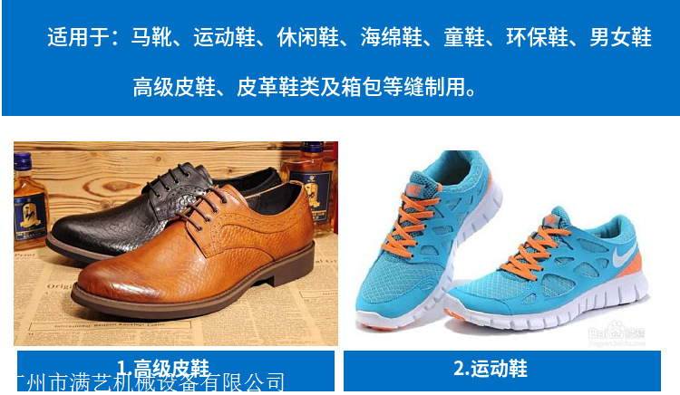一、适用于:马靴、制鞋帽、波鞋、皮鞋、运动鞋、休闲鞋、海绵鞋、婴儿鞋等工业缝纫机皮鞋以及箱包缝制。