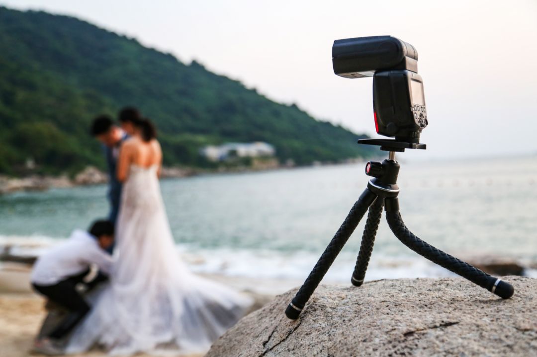 偶遇一对新人拍婚纱照,萌七七看到这种充满爱的画面忍不住要拍一张,又解锁一个新用途,还可以兼容闪光灯。