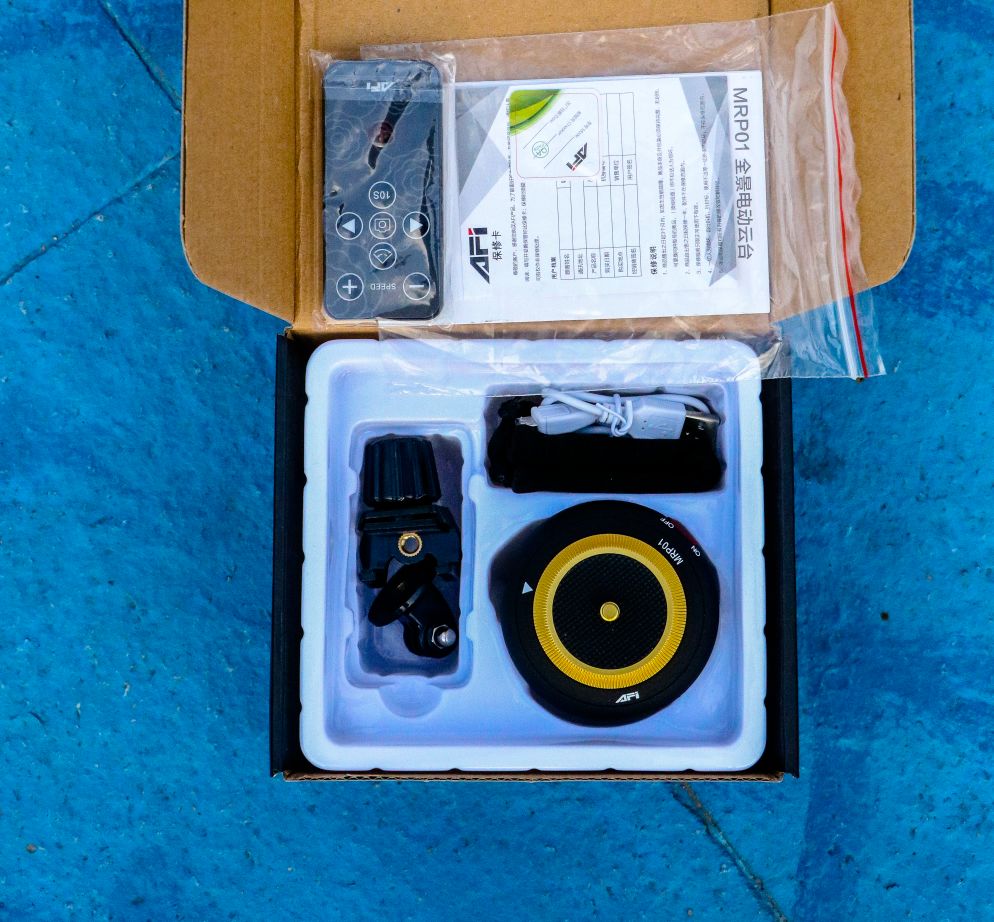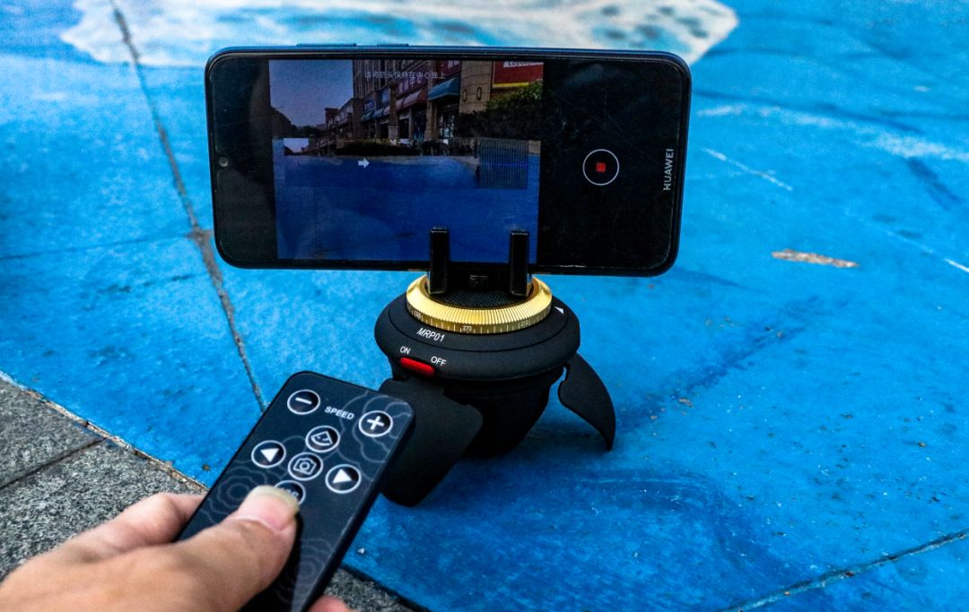 见证奇迹的时刻来了,按下遥控器,可以调节劲捷MRP01的左右转动方向,360度旋转,9挡转速可调。调节到合适的速度,先拍张全景照片试试手感。