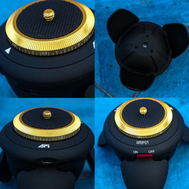 仔细看下这款劲捷MRPO1电动小云台的局部细节图。全自动360度智能遥控拍摄,足够“平”“稳”“顺”。USB充电接口,普通手机充电器就可以充电,充满可以工作九小时,充电快捷方便,续航持久。底部做有1/4螺口,通用各种脚架,拍摄高度可以随意调节。