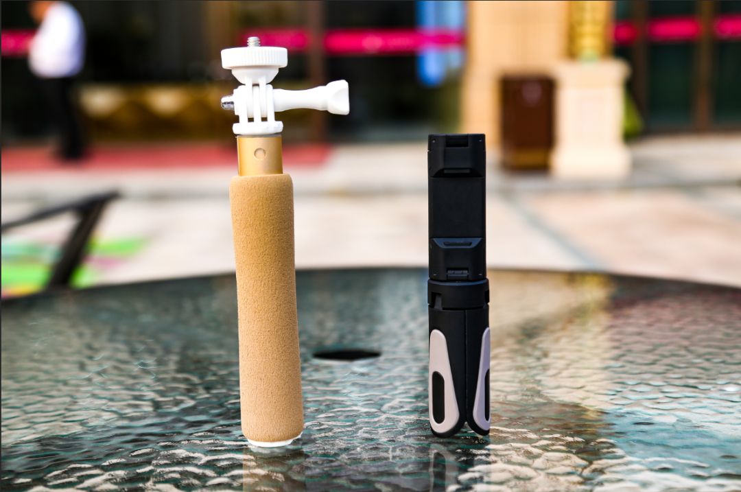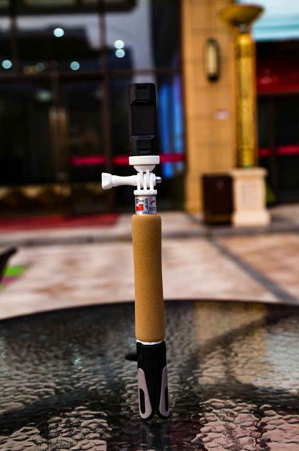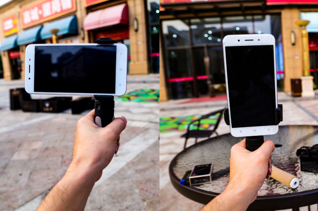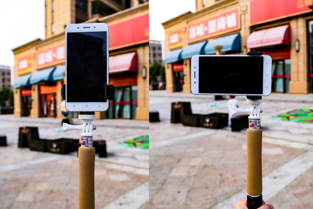 有一点不满意的是,这么便携的手机支架,没有给它搭配一个延长杆,去增加它的拍摄用途。那么我就用自己的延长自拍杆,来试试看效果怎么样吧!