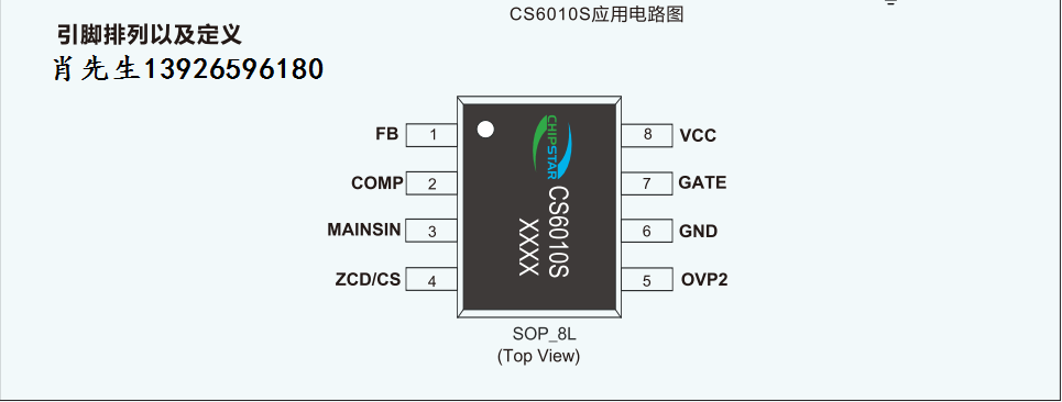 CS6010S是一款临界导通模式/断续导通模式(CrM/DCM)多模式功率因数校正(PFC)控制器,仅需极少的外部元器件,即可实现简洁且高性能的有源功率因数校正功能。芯片具备极低的电源电流,这一特性使其能够实现较低的待机功耗,其典型空载功耗低于50mW。 在轻载条件下,CS6010S可通过死区时间延长技术降低开关频率,从而提升轻载效率。相较于传统的恒定导通时间(COT)控制方式,芯片在断续导电模式(DCM)下,通过可变导通时间控制,能够实现更低的总谐波失真(THD)。 丰富的多重保护功能大幅提升了系统的安全性与可靠性。CS6010S具备过压保护(OVP)、二次过压保护(OVP2)、过流限制(OCL)、过流保护(OCP)、欠压保护(UVP)、电网上电检测(BI)与电网掉电检测(BO)、电源电压(VCC)欠压锁定(UVLO)以及过温保护(OTP)功能。 ClassD音频功放:CS8126S,CS8126T,CS8138,CS8302,CS8122,CS8305,CS8121,CS8563,CS8528,CS8631,CS8618,CS8673,CS8623,CS8655,CS8611,CS8626,CS8676,CS86552,CS8118,CS8120,CS8212,CS8615,CS8622,CS8625,CS8677,CS8688,CS8679E,IU8632,IU8687,IU8689,IU86751,CS8685H,CS8683H,CS86756。 ClassR音频功放(内置升压):CS8323,CS8326,CS8330,CS8359,CS8395D,CS83601,CS83501,CS83702,CS83705,CS8389,CS8390,CS8316,CS8623,CS8316,CS8318,CS83785,CS83787, CS83711,CS8353,CS86552,CS8332,IU8373,IU8309,IU8395,CS8672,CS86817,CS86820,CS83828,CS8396,CS86706,CS83812,CS83815。 ClassAB/D音频功放:CS8139,CS8508,CS8508,CS8532,CS8571,CS8573,CS8575,CS8511,CS8576,CS8536,CS8736。 ClassGF音频功放(内置升压):CS5290,CS5250,CS5230,CS5260,CS5266,CS4230,IU8360T。 耳机功放芯片:CS4410,CS4420,CS4418,IU8200,IU8565,IU8202。 数字功放芯片:IU7189,IU7190,IU7191。 四声道音频功放:CS8725,CS8726。 ClassAB音频功放:CS8895,CS8898S,CS8591。 马达驱动:IU632,IU9019,IU9028,CS9016C,CS9020T,CS9018,CS9022E,CS9025,CS9027,CS9029。 DC-DC升降压:IU5706,CS57066,IU5708D,IU5180,IU5186,IU5516,IU5528,IU5530,IU5531,IU5536,IU5567,CS5503,CS5513R,CS5515R,CS5517T,CS5518T,IU5528D,IU5507T,IU5512,CS5523R,CS5525E,CS5711,IU5200D,CS5622。 电源监控:CS803,CS809,CS810,CS811。 PWM控制器:CS6003S,CS6010S。半桥驱动:CS2103S。 同步整流控制器:CS6210R。打印机专用:IU91906。 DC-DC:IU5002,CS5005,CS5006,CS5025,CS5028,IU5051,IU5052,CS50363,CS5036,CS5038,CS5010,CS7120,CS2101,CS2102。 锂电池充电管理:CS5086,CS5082,CS5080,CS5090,CS5095,CS4056,CS5005,CS5036,CS5054,CS5801,CS5805S,CS5181,CS5305,CS5310,CS5315,CS5318,CS5918R,IU5096,IU5098,IU5918,IU5060,IU5062,IU5066,IU5925,IU5987T,IU5302,IU5306,IU5370,IU5380,IU5383,CS5601,CS5358,CS5256,IU5207,IU5208,IU5209,IU5071,CS5328,IU5365,CS5350,CS5363,CS5160,CS5359。